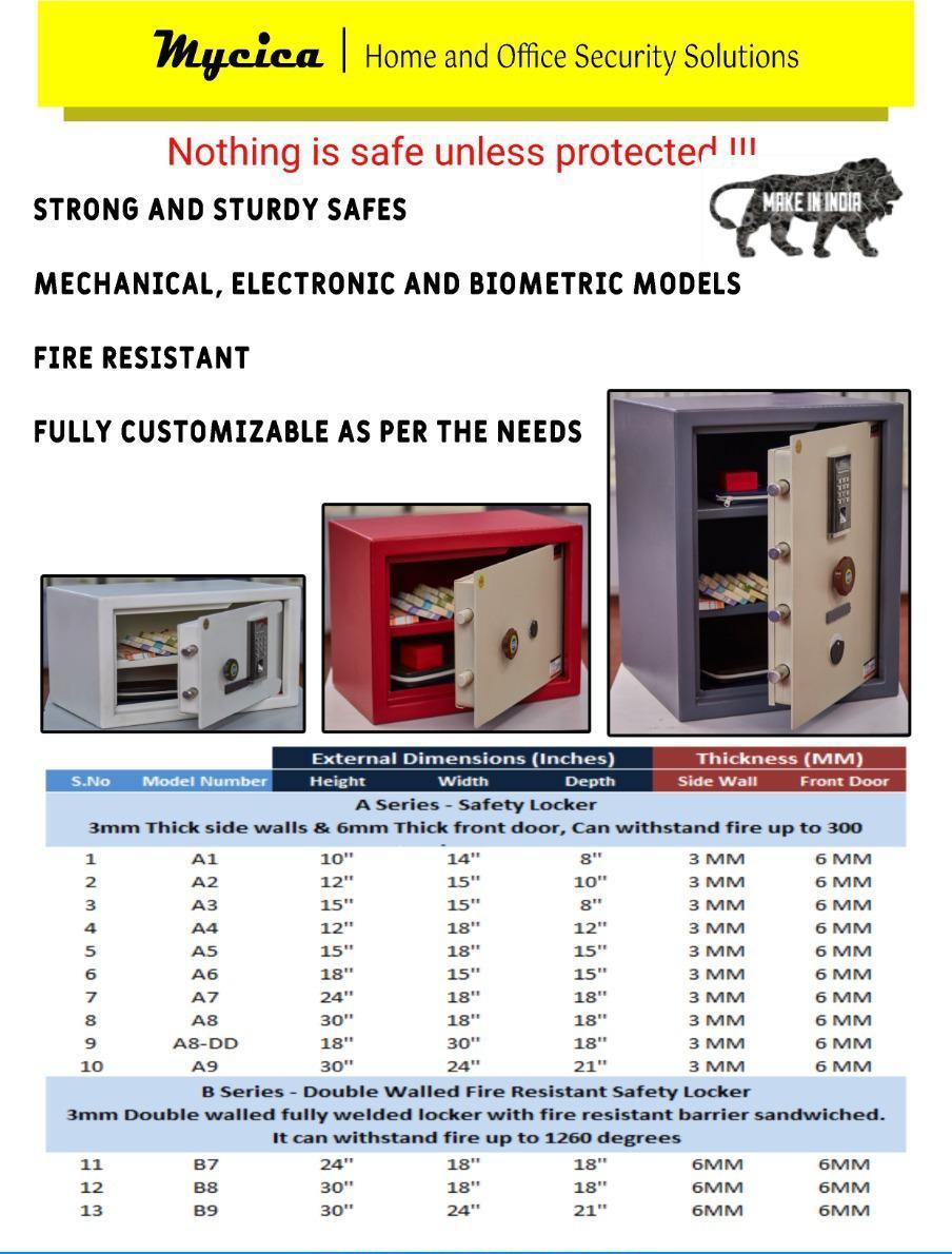 Mycica Safes - Strong Lockers for House. Unpickable Dual Control Locking System Master Key System eliminates misuse Made of strong and sturdy steel plates Powder coated to eliminate rusting Can be anchored or bolted in your wardrobe for additional security Can also be fitted in the floor Customizable according to customer requirements Recommended for safe guarding cash, jewels and valuables. For More Details and Purchase Call Now